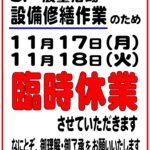 11/17(月)・11/18(火) 5F展望浴場 臨時休業のお知らせ