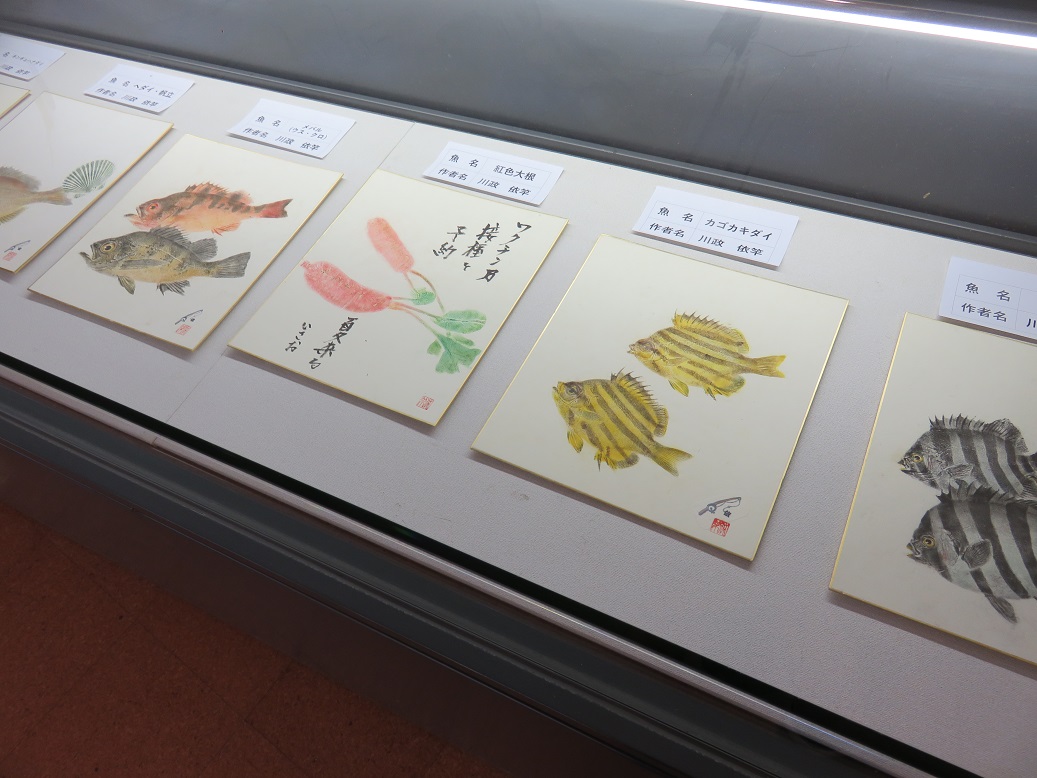 2階 ギャラリー展示コーナーにて、手作りの押し花アート作品や油彩魚拓倶楽部会員様が作成した色鮮やかなカラー魚拓、また見ているだけで笑顔になれる作品展などさまざまな作品、写真を展示しております。。
